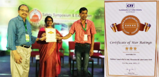 Greases & Lubricants, Kolkata participated in the CII Excellence Awards for Safety Health & Environment (SHE) Eastern Region. Balmer Lawrie received a 3-star rating for its SHE best practices, 5 being the maximum.